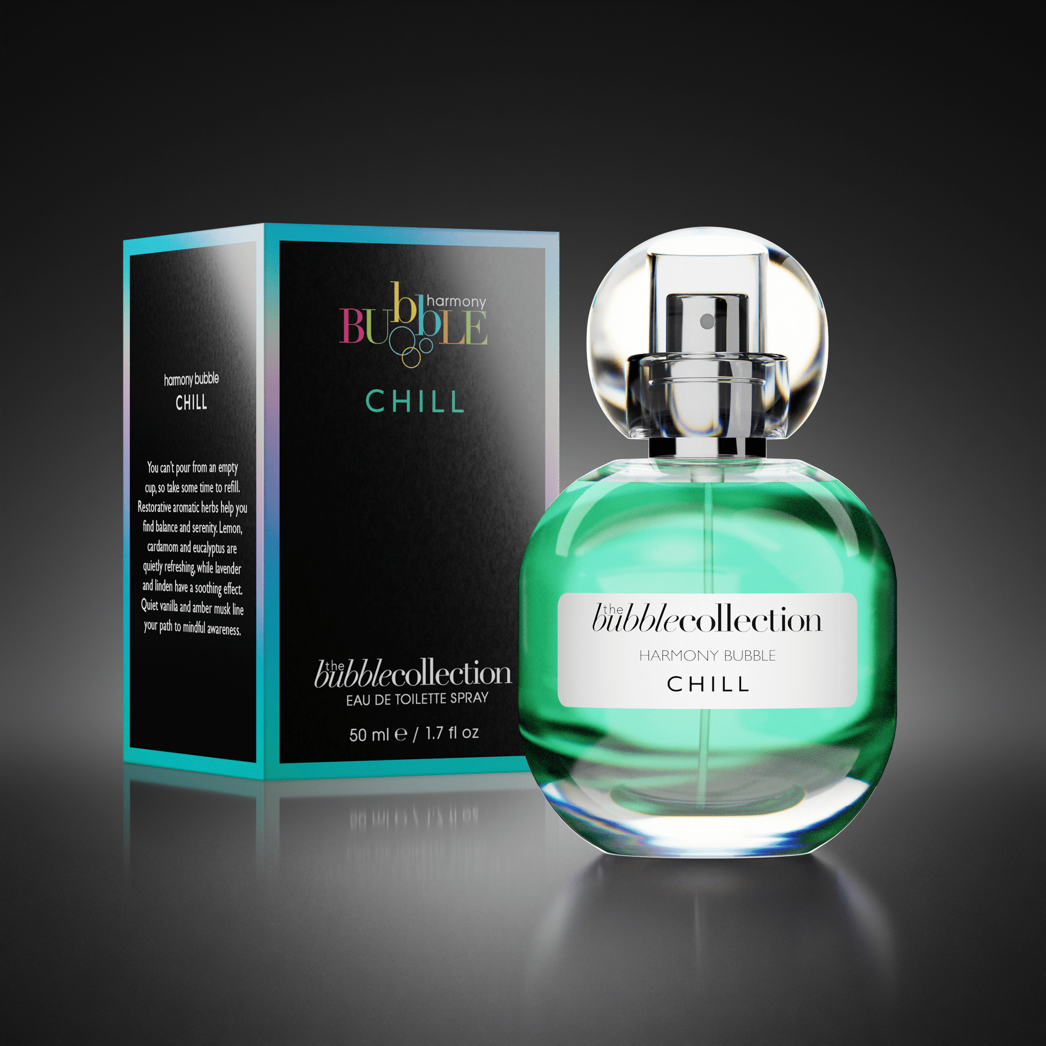 Discover Chill by The Bubble Collection — a sophisticated unisex Eau de Toilette designed to inspire tranquility, balance, and effortless calm. This clean, niche fragrance blends soft florals, warm amber, and restorative herbs, making it the perfect scent for unwinding and staying grounded through life’s busy moments.